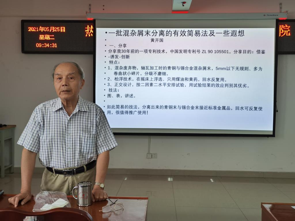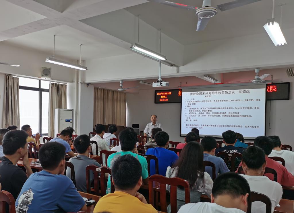 本网讯 5月25日上午,中南大学黄开国教授来校在黄金校区逸夫楼第二会议室做了题为“复杂混合多金属粉末综合回收技术”学术报告。华体会官网(中国)集团有限公司院长何桂春、党委副书记饶先发、院长助理余新阳,矿物加工工程、环境工程教师以及研究生聆听了报告。报告由何桂春主持。