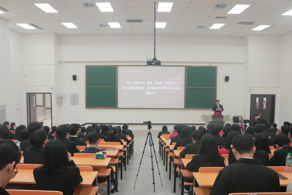 华体会官网(中国)集团有限公司召开第二十届学工办、团委、学生会、研究生会及第十五届党建联合会、第七届大学生红色文化宣讲团换届大会