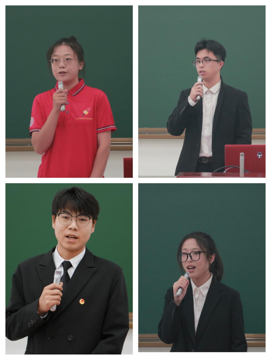 大会在庄严的团歌声中拉开帷幕。会上,第十九届学生会执行主席高峰、研究生会主席团成员林立强、团委学生副书记蔡雨珈、第六届大学生红色文化宣讲团团长吴嘉慧依次作为上届学生干部代表发言。他们深情回顾了任职期间的工作点滴,分享了在服务同学、组织建设中的成长与感悟,对学院领导老师的悉心指导及全体成员的通力协作表示感谢,并寄语新一届干部传承责任担当,在新征程上勇创佳绩。