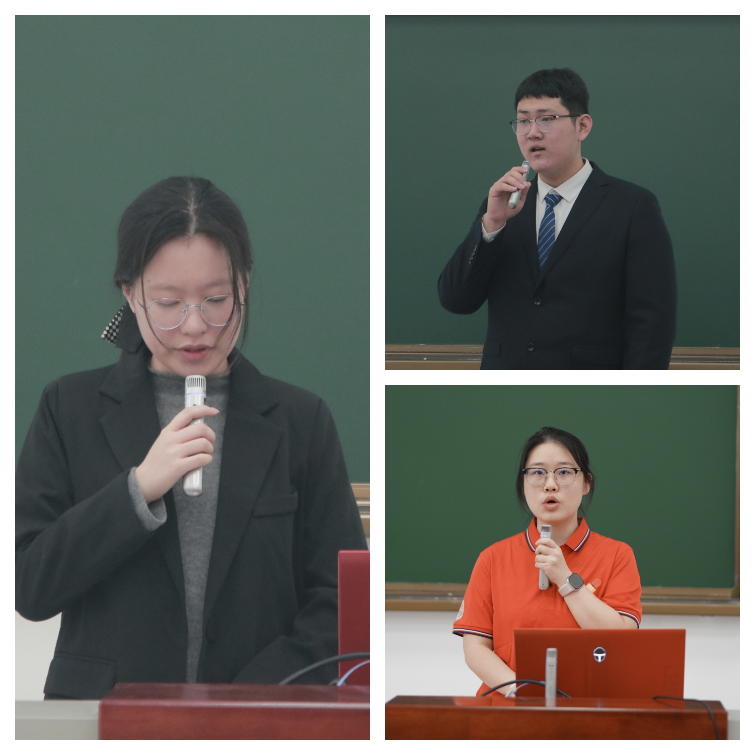 聘书颁发完毕,尹琼老师宣读第二十届研究生会成员名单,张小普老师宣读第二十届学工办、团委、学生会及第十五届党建联合会学生干部、第七届大学生红色文化宣讲团成员名单。新一届学生干部代表接力发言,第二十届研究生会执行主席昌越、学生会执行主席邱月鹏、第七届大学生红色文化宣讲团团长黄惠贤分别表态,承诺将以饱满的热情、务实的作风履职尽责,凝聚团队力量,提升服务效能,为学院学生工作高质量发展贡献青春力量。