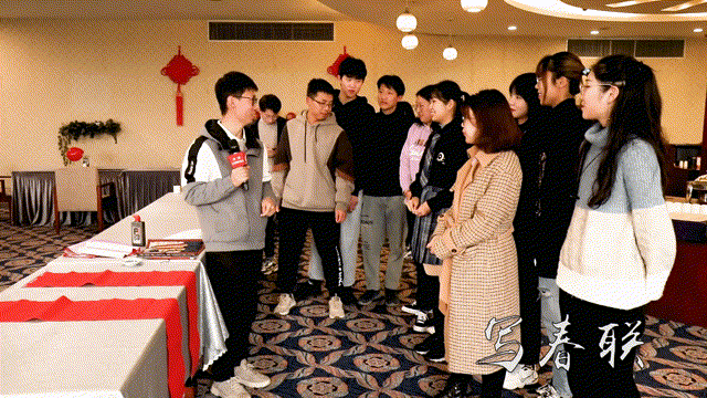 “快来扫‘福 ’,能得到朱国平老师的赐福我真是赚到啦!”生日当天,帕力再与其他留校生一起受邀参加了学院举办 “年味热身活动”,定制款春联、窗花受到大家的追捧。擅长书法创作的朱国平老师自带笔墨现场教大家写春联,得知帕力再同学当天生日,朱老师大笔一挥写下临时创作的春联:
