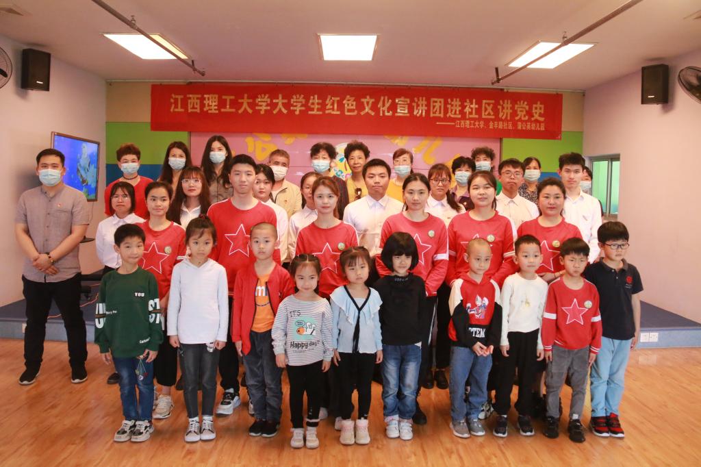 本网讯 4月2日上午,资环学院大学生红色文化宣讲团到赣州市章贡区金丰路社区和蒲公英艺术幼儿园,为社区党员群众和幼儿园教师、小朋友讲党史。