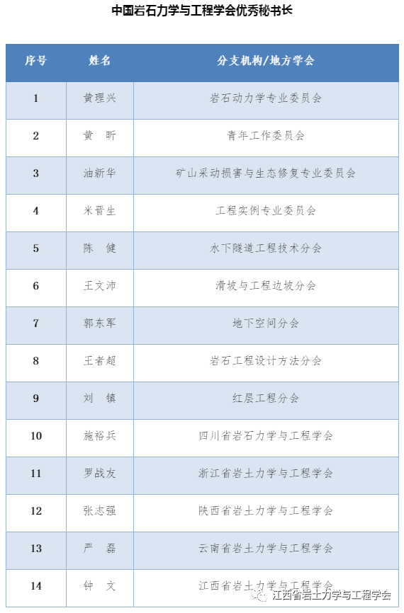 中国岩石力学与工程学会(CSRME)是依法经民政部注册登记的服务于全国岩石力学与岩土工程领域科技工作者的学术性群众团体,是中国科协领导下的承担世界一流学会建设任务的全国学会,涵盖了水利水电、煤炭石油、地质矿山、交通运输、市政建设、地灾防控、环境保护、国防工程等诸多行业,是国内外具有广泛影响力的跨行业、跨部门、跨学科的岩石力学与岩土工程领域的重要学术组织是江西省岩土力学与工程学会的唯一学术指导单位。