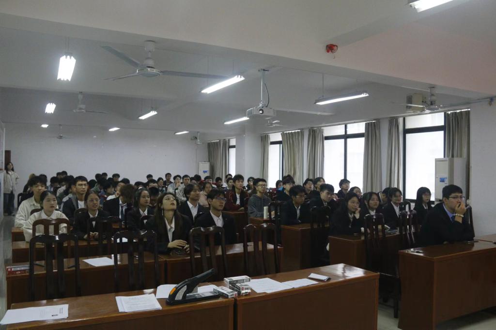 王骏豪领学了《中华人民共和国国家安全法》,向同学们普及国家安全知识,并就国家安全知识进行提问。随后,王骏豪从学习环境、生活环境、财产安全三个方面介绍国家安全的重要性,还通过举出叙利亚外交官贾法里坐在联合国总部大楼休息区的具体实例表示,国家安全是国家生存发展的基本前提,是民族复兴的根基。