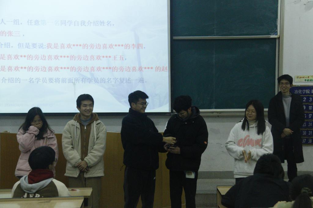 为了让培训内容更加生动,营造活跃的培训氛围,深入理解培训内容,梁颜祯与学生们做了一些小游戏。在小游戏“快乐传声”中,学生们用活灵活现的肢体语言、有口说不出的纠结,形象的展现了语言交流的重要性。在“串名字游戏”中,学生们一个接着一个的回忆起各自队友的喜好与名字,并将其一字不差的说出,虽是框架简单的语句,但多个队友的内容互相叠合也让语句变得稍微复杂多样,每当有人说错便会引来台下同学的紧急提示,当最后一位学生说完后,一阵轰然的掌声,一场开怀的大笑,不自然、害羞、尴尬等情绪都烟消云散。