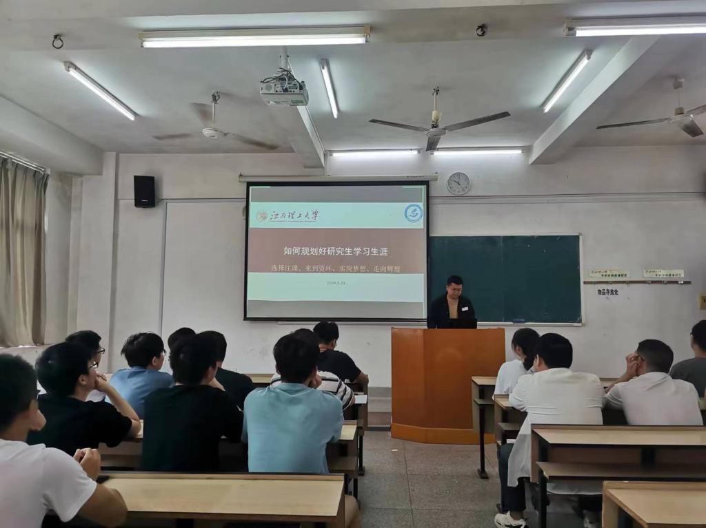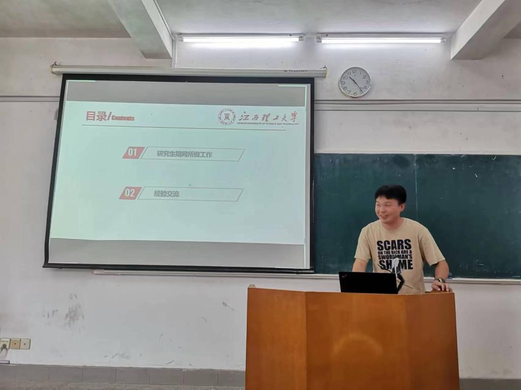 分享会上,杨德龙分别讲述了如何做好论文题目的确定、论文框架的搭建及试验、论文撰写、论文投稿与回复,还向在场的同学们分享了自己读研期间的感悟。最后,他提出:希望各位准研究生们能够在江西理工大学的三年里,明确目标、学到知识、增长才干,成长为一个优秀的理工人。