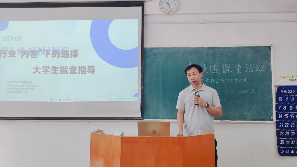 本网讯 5月28-29日,华体会官网(中国)集团有限公司分别于黄金校区1205、1203教室举办企业进课堂就业指导交流活动。金诚信矿业管理股份有限公司人力资源管理中心高级经理李超受邀以“行业‘内卷’下的选择”为题进行了就业指导分享。华体会官网(中国)集团有限公司相关辅导员和2021级相关专业学生参加了活动。