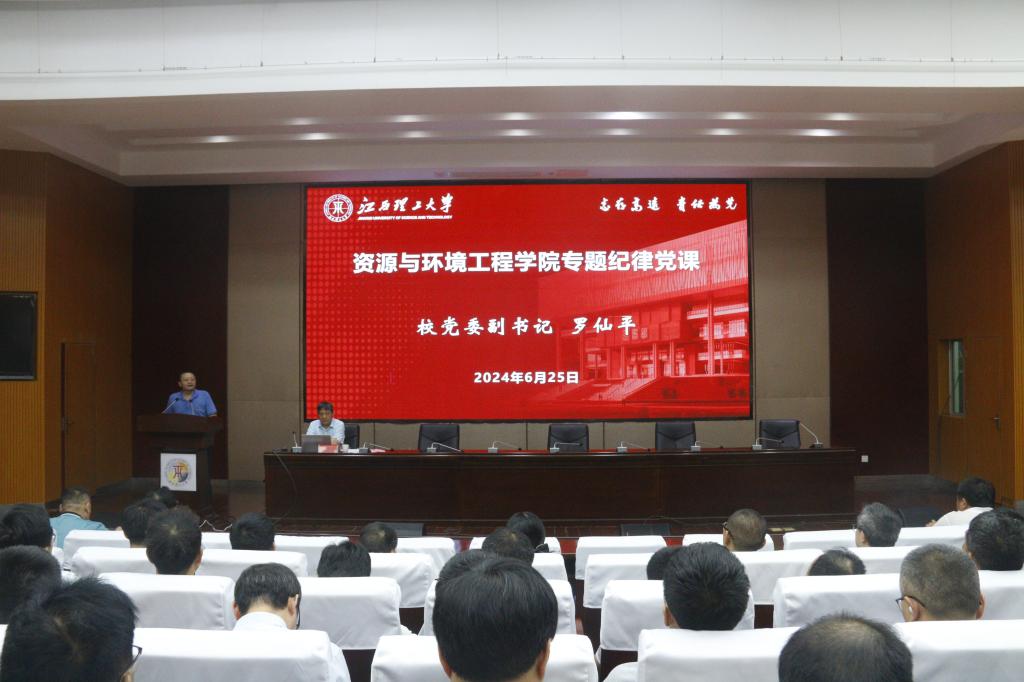 本网讯 为进一步树立纪律意识,切实维护和执行好党的纪律,6月25日,校党委副书记罗仙平在黄金校区逸夫楼学术报告厅主讲了题为《严党纪明方向 强党性守初心》的党纪学习教育纪律党课。资源与环境工程学院班子成员和全体教工党员参加了党课学习。党课由学院党委书记陈明主持。