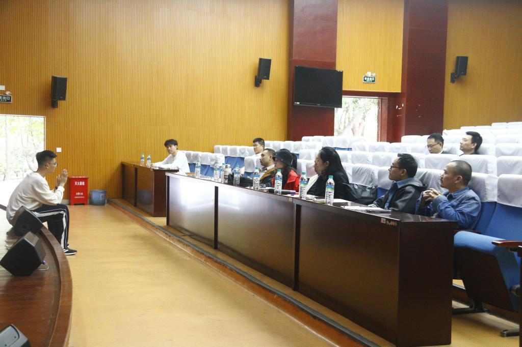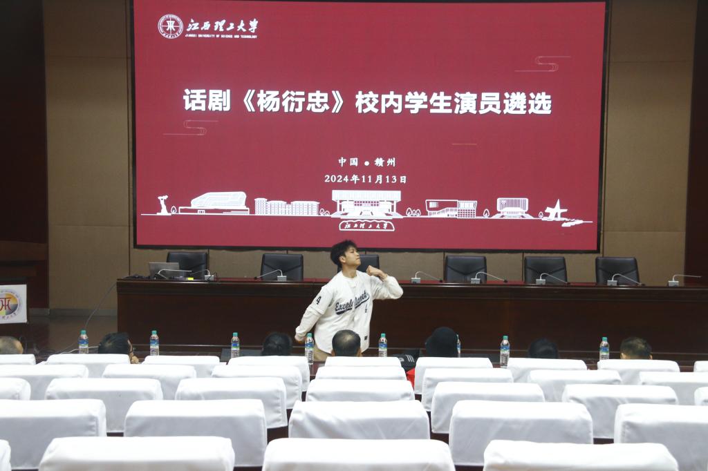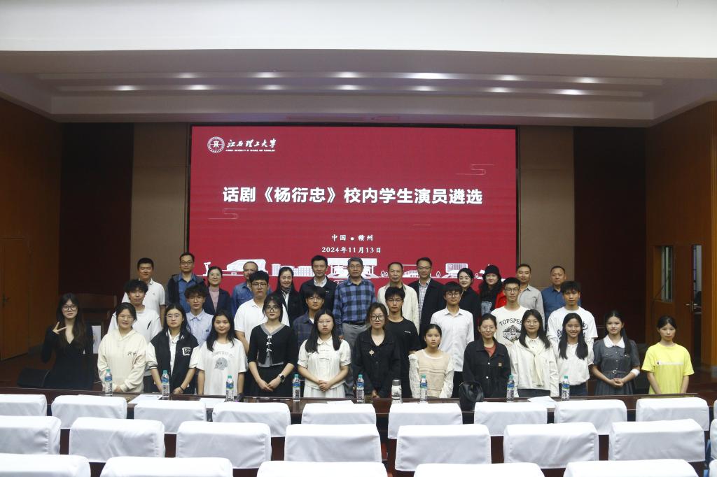 本网讯  11月13日,江西省话剧团党总支书记詹凯,话剧《杨衍忠》导演雷欣、主演黄国光、张鹏霄、林晶、熊鹏慧、舞美设计李贵义、剧场经理齐松武等主创团队一行来校交流,我校党委常委、副校长龚姚腾、熊志华,校团委副书记杨智昕、黄芳,学院党委副书记张春雷等参加了相关活动。剧目主创团队在黄金校区逸夫楼学术报告厅进行了话剧《杨衍忠》校内演员遴选。