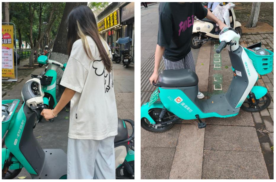 活动结束后,同学们在返校途中关注到学校校门前人行道上的共享自行车存在摆放不当、影响交通的问题。同学们积极发挥热爱劳动的精神和担当,将乱停乱放的车辆排放整齐,恢复有序的交通。