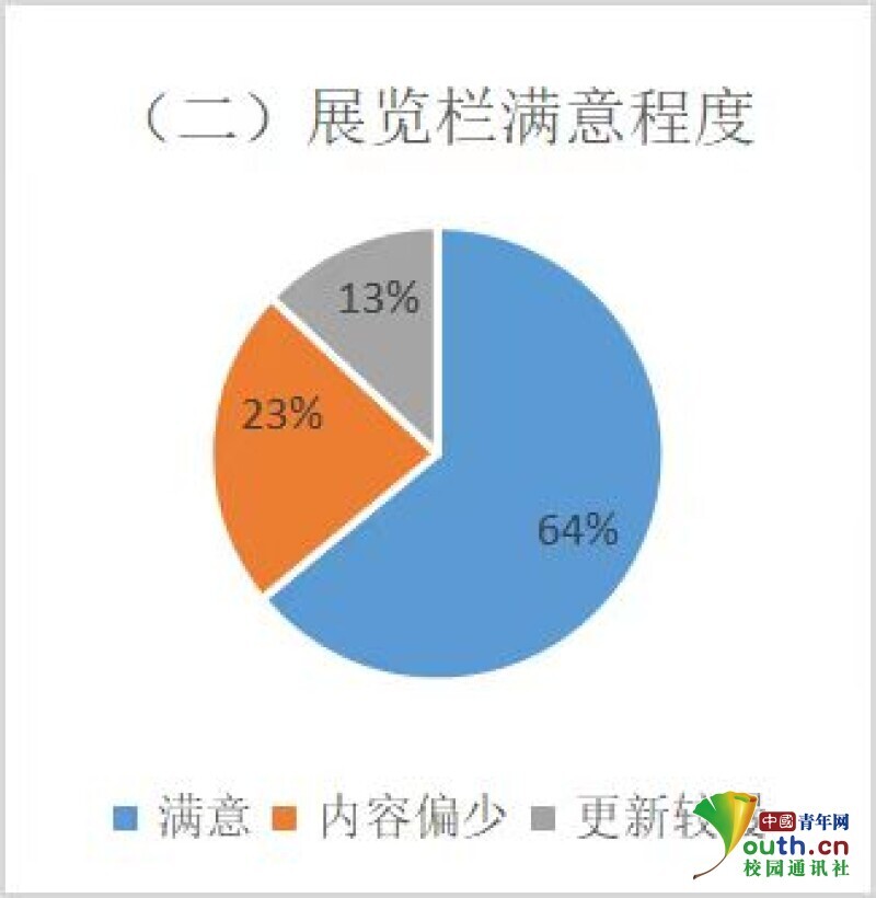 有64%的居民持满意态度,有23%的居民认为内容偏少,有13%认为展览的故事更新较慢较少。