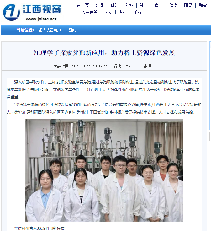 《江西视窗》:江理学子探索芽孢新应用,助力稀土资源绿色发展