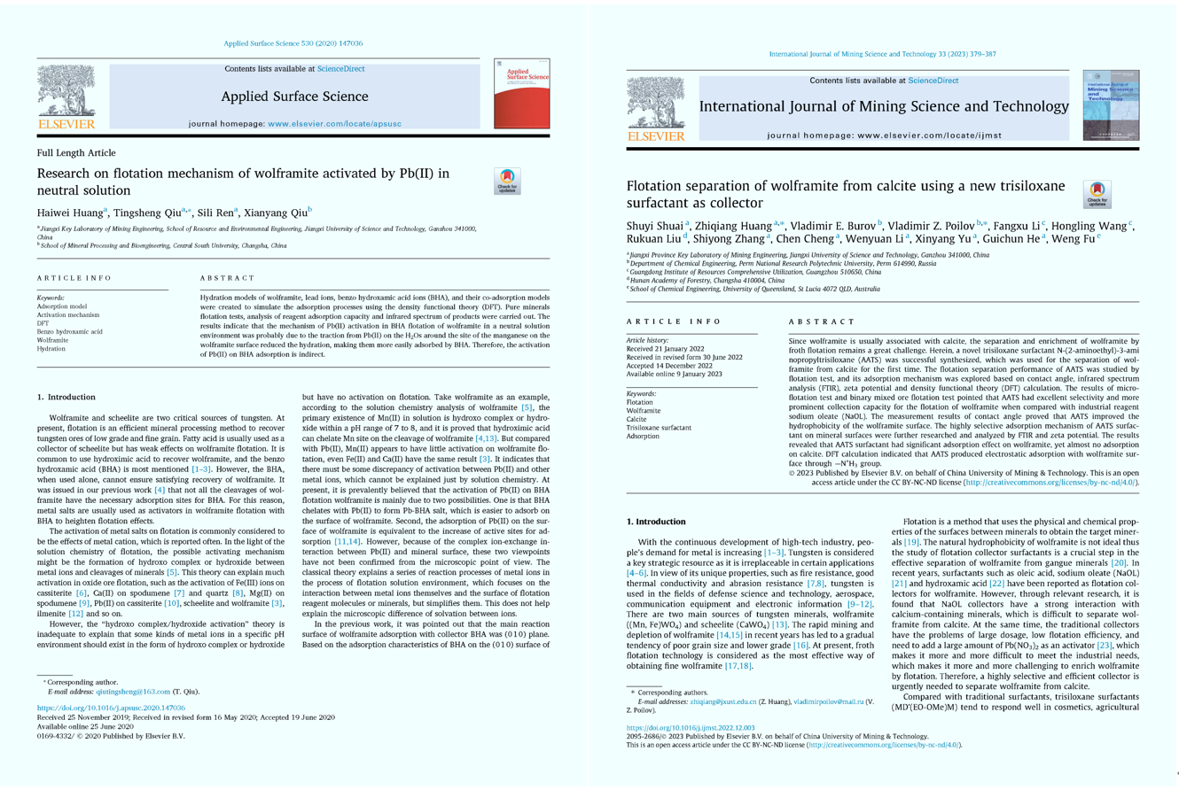 基于表面氧化行为调控的钨矿伴生硫化矿物浮选分离研究 |