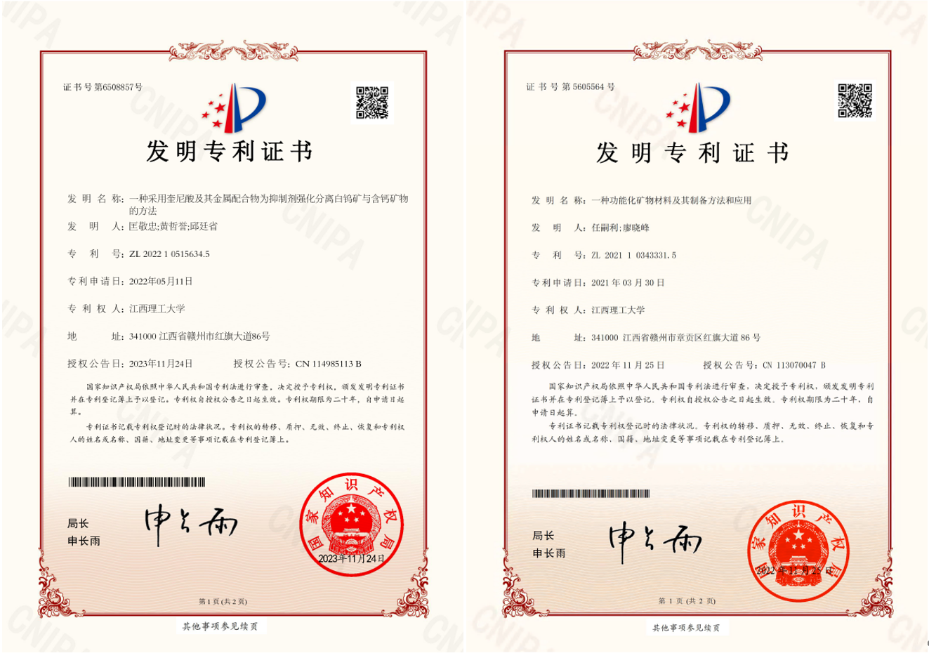 本实验室前期依托江西省矿业工程重点实验室,围绕铜、稀土、钨、钽、铌、锂等战略金属矿产碎磨、分选、矿物材料及二次资源利用等产业链,形成了一大批高水平的研究成果。近5年,共承担国家重点研发计划项目(2项)、国家自然科学基金、省重大科技专项等科研项目80余项,签订横向科技服务项目150余项,科研经费超8000万元,解决了复杂铜多金属硫化矿低碱分选及综合利用、极低品位钽铌矿山废弃资源整体清洁回收、复杂低品位含钨钼原料综合利用、离子型稀土绿色高效提取与生态修复、磨矿分级过程优化与控制等行业共性关键技术问题,取得系列“国际领先”成果,在江铜、江钨、中国稀土等龙头企业获得应用,累计新增效益超百亿元,提升了我国有色金属产业的核心竞争力,获得江西省自然科学一等奖、江西省科技进步一等奖等省部级奖励25项;授权国际/国家发明专利58件、发表高水平学术论文308篇;公开出版专著、教材21部。通过科研反哺教学教研与人才培养,先后获国家教学成果二等奖、江西省教学成果特等奖等国家/省部级教学成果奖励10项;指导学生获得中国国际“互联网+”创新创业大赛国家金奖、银奖等国家级竞赛奖励47项。