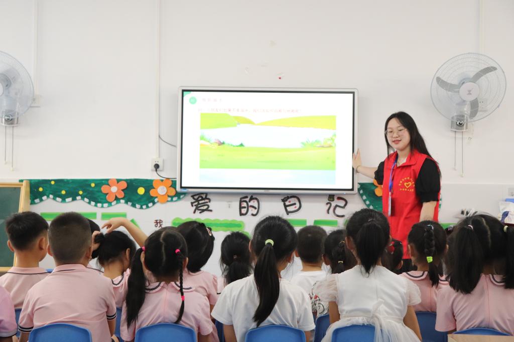 华体会官网(中国)集团有限公司“薪火相传,青助强国”暑期社会实践队成员杨文炜、代福杰分别对大一班、大二班的小朋友们进行了环保教育与安全教育,通过宣讲让小朋友们更清楚地了解了垃圾分类、节能节水以及防溺水、交通安全、防火、防拐骗、防诈骗等,提高小朋友的安全环保意识。