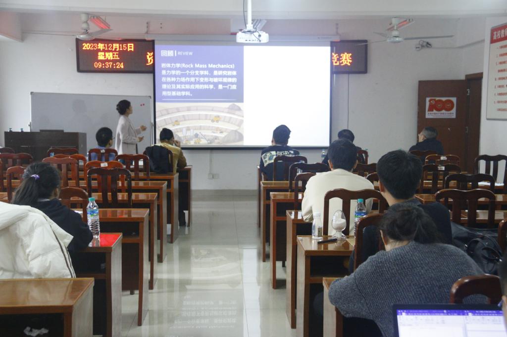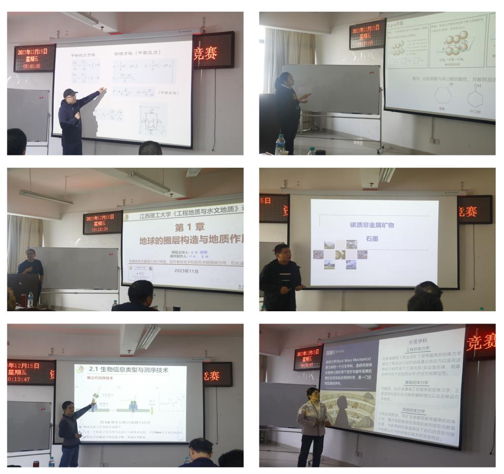 竞赛中,学院各专业参赛老师通过直观的图文,用凝练易懂的语言、独到的理解向大家讲述了相关课程。环境工程系刘洪霞老师给大家带来《共轭效应》的讲解,清晰的教学思路、扎实的专业学识使教学深入人心;矿物加工工程系于明明老师的《碳质非金属矿物—石墨》,通过不同角度介绍了石墨的特征和性质,逻辑清晰,通俗易懂;地质工程系李瑞雪老师以《岩体力学》为题,从形成、发展、思考三个方面分步讲解,有条理的进行授课。其他老师也以生动的语言向观众呈现了一堂堂精彩的授课,同时展现了教师的风采与热情。