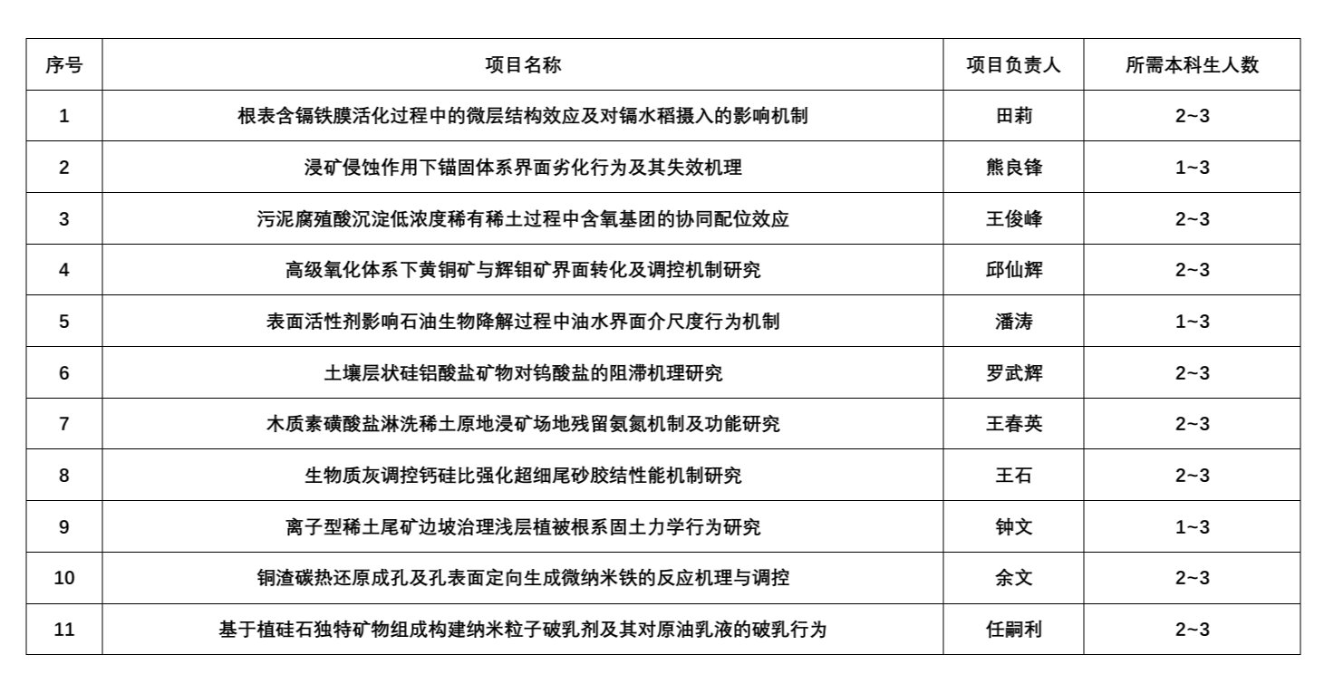 2024年资源与环境工程学院科研团队或项目所需本科生信息