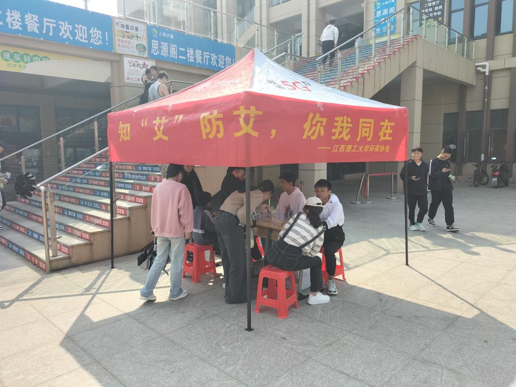 本网讯  为增强大学生预防艾滋病的意识,11月25日,由华体会官网(中国)集团有限公司主办、绿色之家环保协会和青年志愿者协会共同承办的以“知‘艾’防艾,你我同在”为主题的“世界艾滋病日”宣传教育活动在三江校区东区食堂外顺利举办。