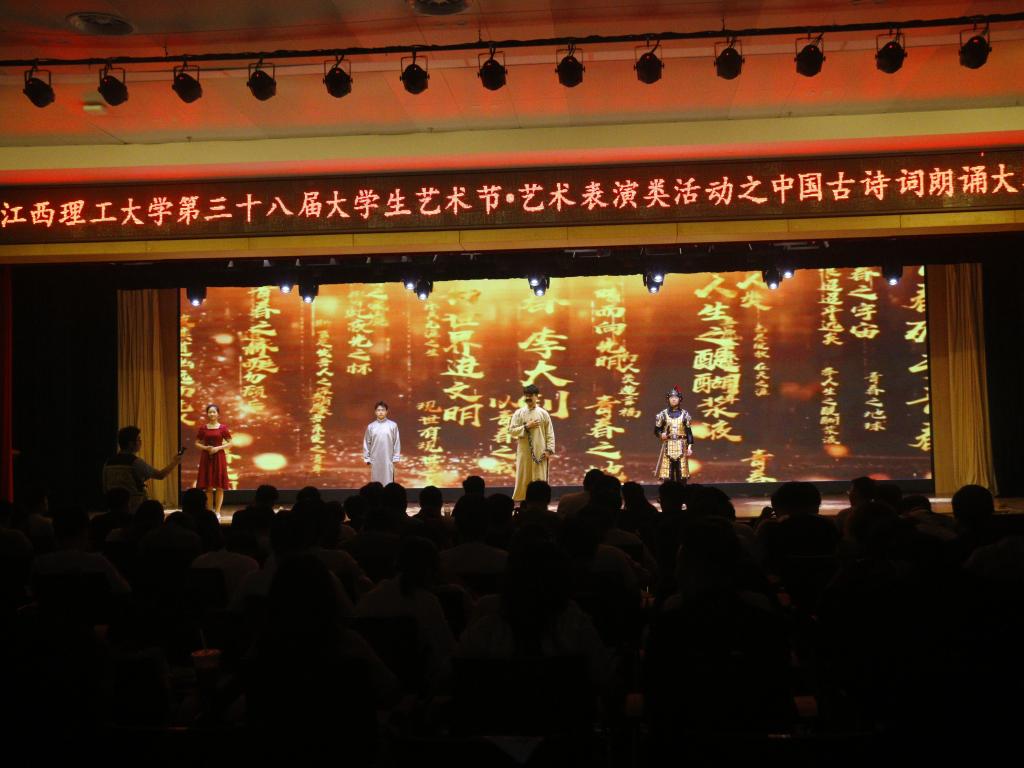 本网讯  4月20日,由校团委、教务处主办,土木与测绘工程学院承办的校第三十八届大学生艺术节·艺术表演类活动之中国古诗词朗诵大赛在三江校区三实楼一楼多功能厅举行。来自各学院、艺术团的17支参赛队伍进行了角逐。