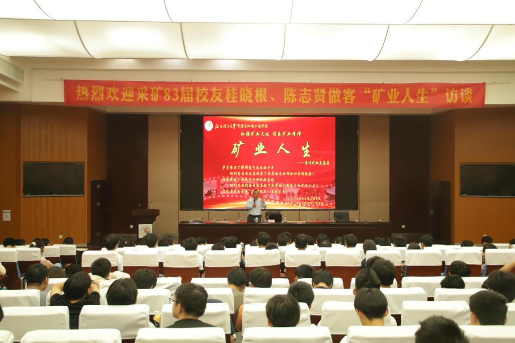 本网讯  9月24日,华体会官网(中国)集团有限公司采矿工程专业83届校友桂晓根、陈志贤受邀做客华体会官网(中国)集团有限公司“矿业人生”访谈,在黄金校区逸夫楼学术报告厅以“同宿舍校友共同演绎‘江西理工人’的情怀与担当”为主题,与师生共话自己在矿业领域的风雨兼程与辉煌成就。学院院长何桂春,辅导员刘浩、张吉勇以及各专业研究生、本科生近300人参加了访谈。访谈由何桂春主持。