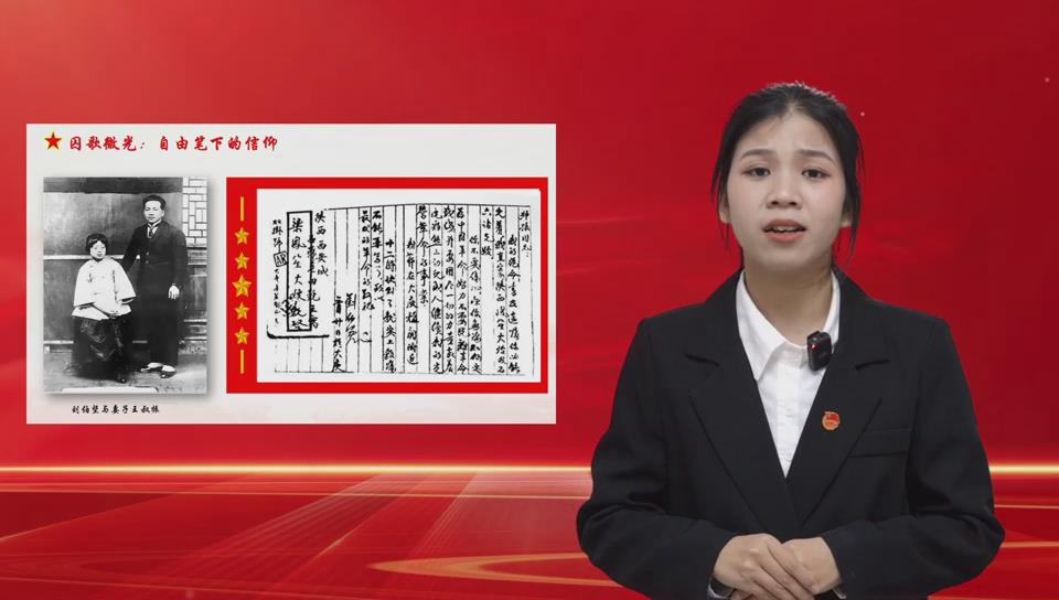 华体会官网(中国)集团有限公司大学生红色文化宣讲团王嘉乐以“囚歌微光:自由笔下的信仰”为题,讲述革命烈士刘伯坚入狱后写下的四封家书,体现他舍小家为大家的革命情怀、宁死不屈的革命精神。