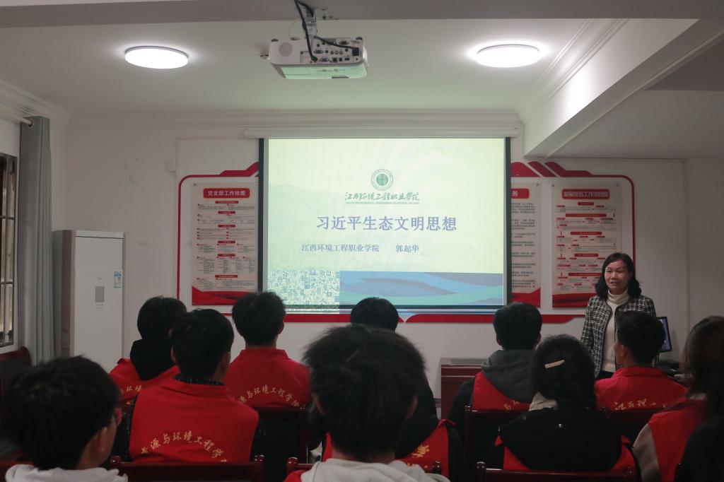 本网讯  12月7日下午,为切实提升新时代大学生在志愿服务中对习近平生态文明思想的理解与感悟,学院特邀江西环境工程职业学院郭起华老师于水南街道学府社区为学院学生志愿者举办了一场以“习近平生态文明思想”为主题的理论宣讲。