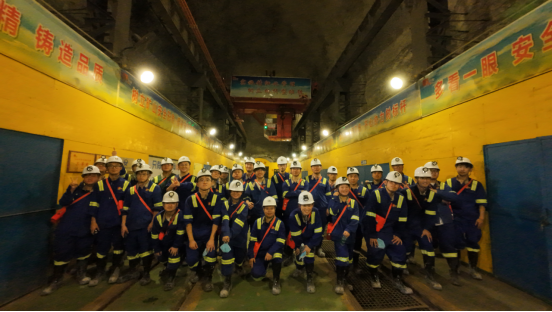 在公司机械化程度较高的海矿石碌项目部井下作业面,项目部经理层带领师生们深入井下,近距离观摩现代化采矿工艺与智能装备应用。标准化的文明生产环境、先进的机械设备配备、有序高效的出矿作业流程,特别是金诚信自主研发生产的UQ-25地下自卸车在井下灵活穿梭令师生们对金诚信标准化管理和矿山装备技术先进水平和创新实力表示赞叹,也让同学们对未来在现代化矿业施展才干充满期待。“青年是矿业未来的希望。”海矿石碌项目经理王宏勤在闭营仪式上希望同学们在矿山一线积蓄能量、精进知识,勇于积极投身矿业创新智慧发展的大潮。