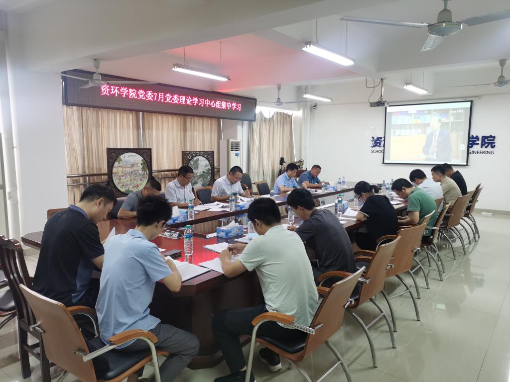 本网讯 7月29日,我院在黄金校区逸夫楼第一会议室召开“弘扬科学家精神 推动各项事业高质量发展”为主题的7月党委理论学习中心组集中学习会。学院党委书记陈明,党委副书记张春雷,副院长、陈飞、余新阳,生命科学学院副院长董伟以及学院党委委员、师生党支部书记参加会议。会议由陈明主持。