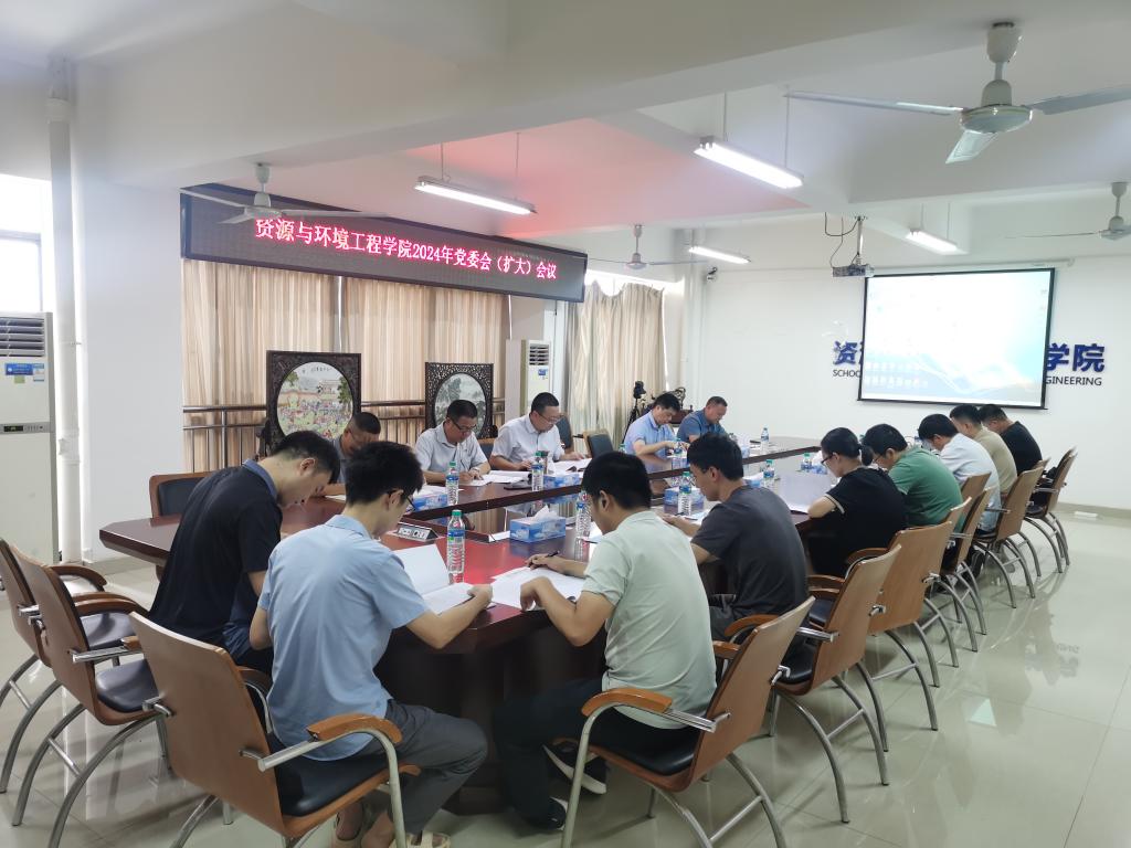 本网讯 7月29日,资源与环境工程学院在黄金校区逸夫楼第一会议室召开党委会(扩大)会议学习贯彻党的二十届三中全会精神。学院党委书记陈明,党委副书记张春雷,副院长陈飞、余新阳,生命科学学院副院长董伟以及学院党委委员、师生党支部书记参加会议。会议由陈明主持。