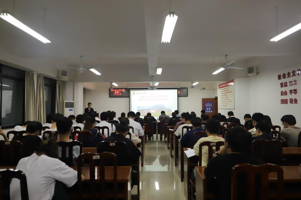 本网讯  9月22日,资环学院于黄金校区逸夫楼第二会议室召开2020年本科生国家奖学金评审会。学院党委副书记饶先发,党建组织员赖华,学工办兼团委负责人刘浩,辅导员张吉勇、叶景胜、刘辉、刘星星、梁颜祯担任教师评委,17、18、19级各班的27名学生代表担任学生评委。
