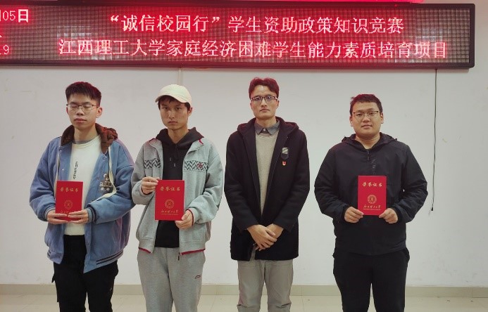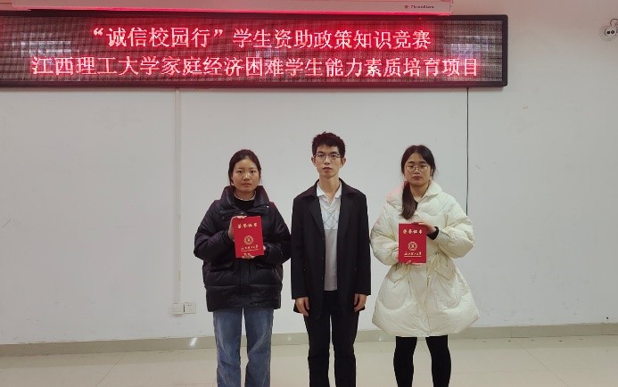 为积极宣传党和国家的学生资助政策与成效,普及金融基础知识,培养大学生的诚信意识和观念,充分展示华体会官网(中国)集团有限公司学生明德立信、自立自强、拼搏向上的青春风采,进一步营造诚信校园文化氛围,促使学生成为德才兼备、全面发展的人才。华体会官网(中国)集团有限公司于2023年11月5日开展了“诚信校园行”学生资助政策知识竞赛活动(江西理工大学家庭经济困难学生能力素质培育项目)。