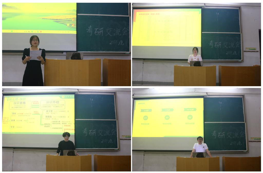 分享会上,各专业的2020级保研、考研学长、学姐们结合自己的考研经历,从考研目标选定、考研科目复习、考研心态、考研资料以及信息的搜寻等方方面面进行了详细的分享。学长、学姐们均表示,定期复盘学习是一个很重要的环节,通过复盘学习可以对近期学习内容进行总结,有利于巩固、梳理和进一步制定合适的学习计划。