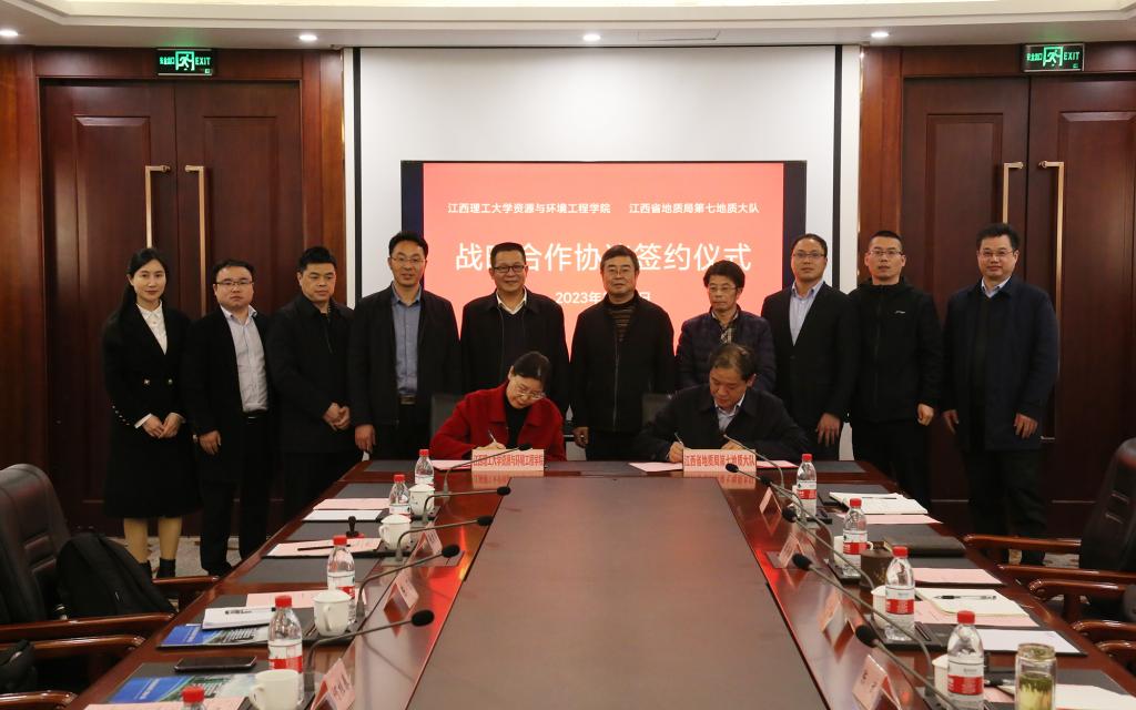 本网讯  3月31日,我院院长何桂春、党委副书记饶先发、副院长陈飞、余新阳等一行赴江西省地质局第七地质大队进行了访企拓岗,并签订了校企合作协议。第七地质大队队长陈武、副队长喻泽琼、总工程师吴忠如接待了何桂春一行。