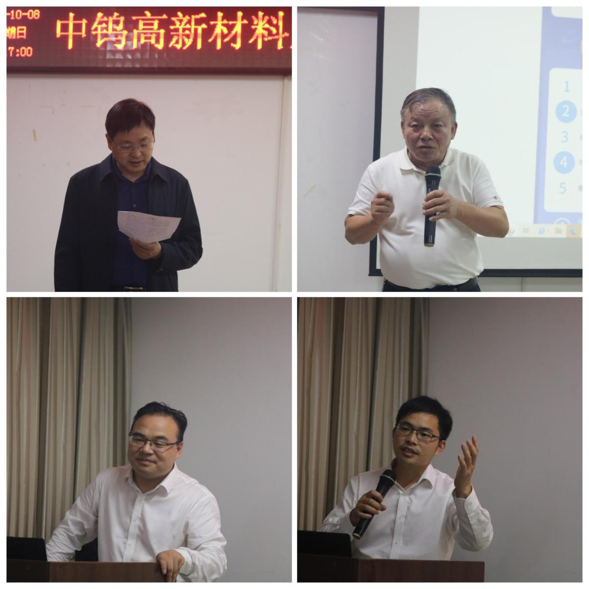 本网讯  10月8日晚,中钨高新材料股份有限公司在黄金校区逸夫实验楼第二会议室开展招新宣讲会。我校科技处处长吴彩斌,中钨高新材料股份有限公司采矿高级工程师袁节平、选矿高级工程师廖德进,研究中心选矿所所长、2009级选矿校友杨长安,资源与环境工程学院相关辅导员以及2020级采矿工程、矿物加工工程专业毕业生参加了宣讲会。
