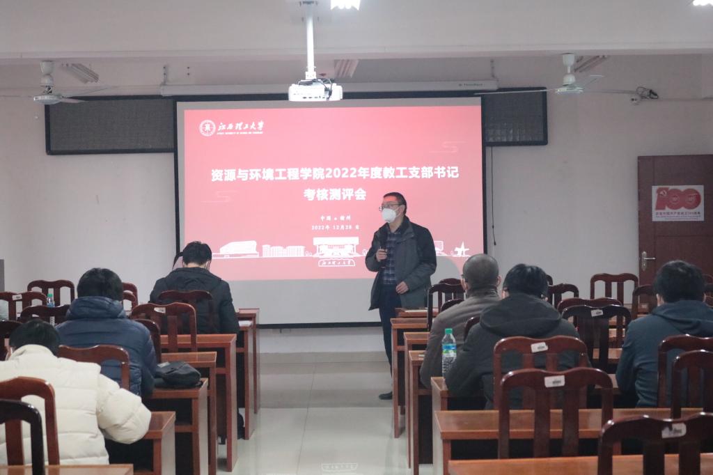 本网讯  12月28日下午,资源与环境工程学院于黄金校区逸夫楼第二会议室召开教工支部书记抓党建工作述职及测评会议。资源与环境工程学院党委书记陈明、院长何桂春、党委副书记饶先发、副院长陈飞、余新阳以及党委委员、各支部党员代表参加此次会议。会议由陈明主持。