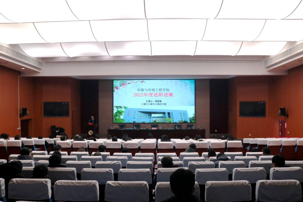 本网讯 1月3日下午,资源与环境工程学院于黄金校区逸夫楼学术报告厅召开学期末全院教职工大会。资源与环境工程学院院长何桂春党委书记陈明、党委副书记饶先发副院长陈飞、余新阳和全体教职工参加了大会。