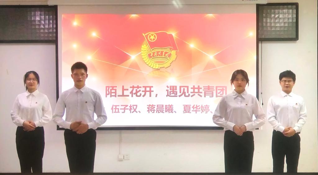 来自大学生红色文化宣讲团的伍子权、夏华婷、蒋晨曦徐俊哲同学讲述了他们眼中共青团光辉而沧桑的的三个主要时期,了解每个时期共青团的时代特点,指出青年一代不能遗忘历史,在历史的浪潮中,走进团史,学习先辈精神,把握时代脉搏