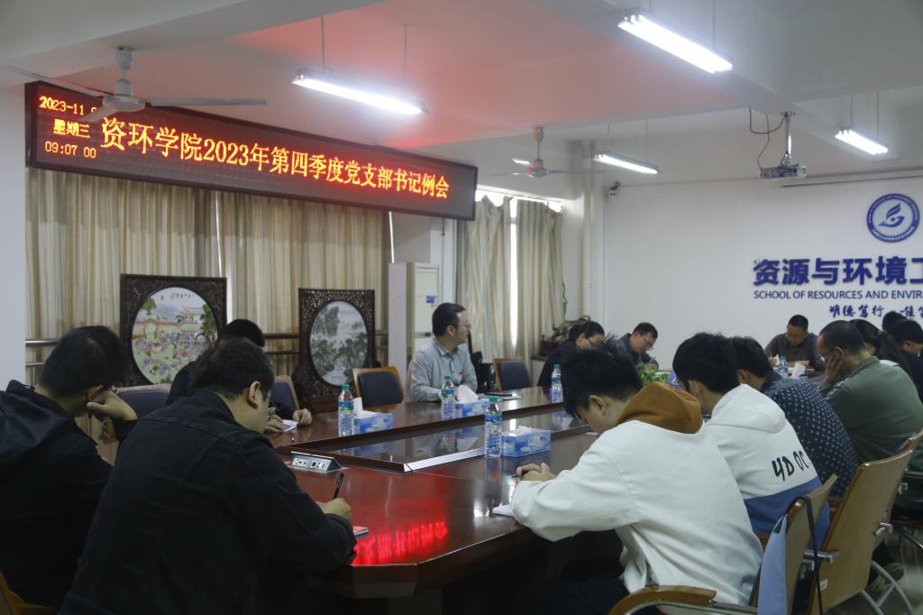 本网讯  11月8日,华体会官网(中国)集团有限公司在黄金校区逸夫楼第一会议室召开2023年第四季度党支部书记例会。学院党委书记陈明、副院长余新阳、教师党支部支委成员、学生党支部书记参加了会议。会议由陈明主持。