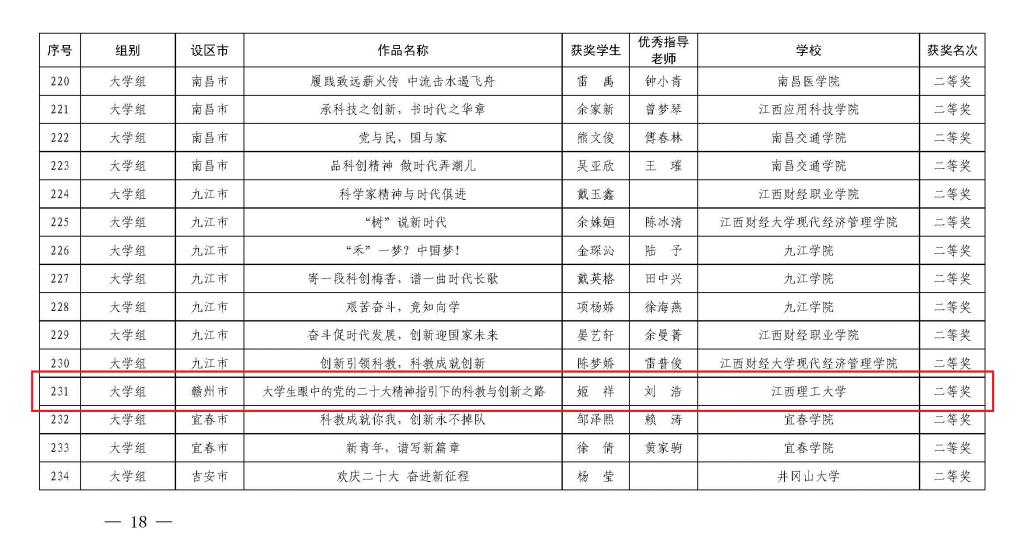 本网讯  近日,江西省教育厅公布了2023年“非凡成就铸辉煌 踔厉奋发担使命”主题读书活动获奖名单。