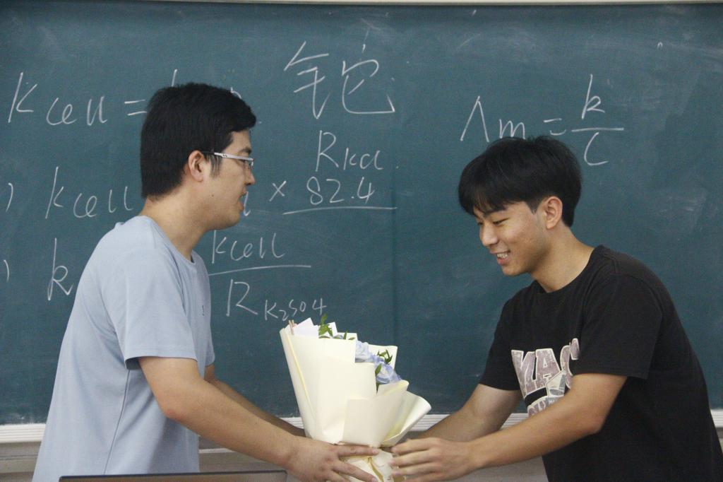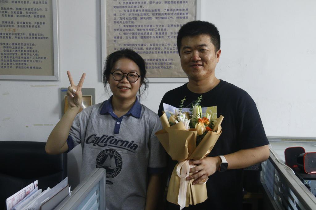 “老师,您好!祝您节日快乐!”敲门进入一间间办公室和教室,老师们看着突然映入眼帘的鲜花,喜悦之情溢于言表。同学们的祝福和美丽的鲜花为他们的生活增添了一抹鲜艳的色彩。部分外出的老师,同学们则把鲜花放在其办公桌上,让每个教师都能收到学生们的祝福。