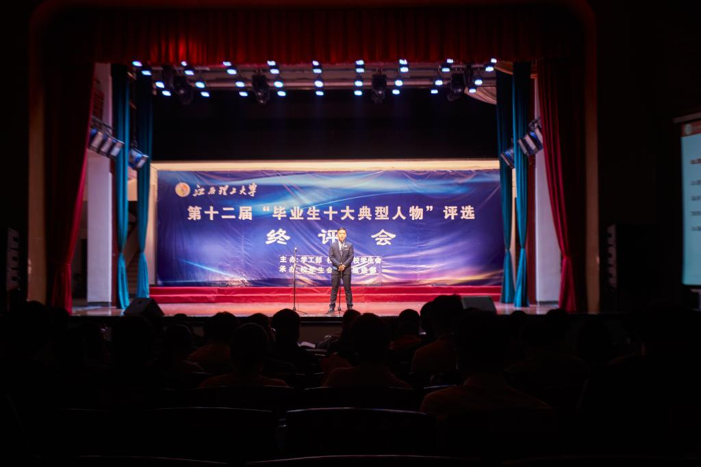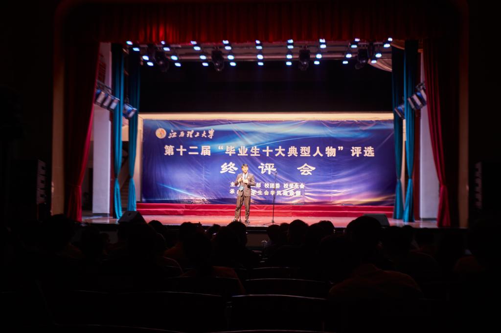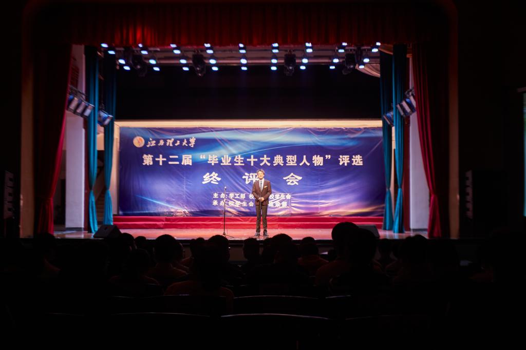 本网讯  5月13日,校第十二届“毕业生十大典型人物”评选终评会于红旗校区大礼堂隆重举行。本次活动由学工部、校团委、学生会共同主办,校学生会学风建设部承办。校党委副书记罗仙平,校党委常委、党委宣传部部长盛晓明,校党委常委、党委组织部部长刘志刚,校学生工作指导委员会成员及各学院(学部)的师生评委参加终评会。此次终评会在南昌校区、先进铜产业学院设立了分会场,同步进行直播。